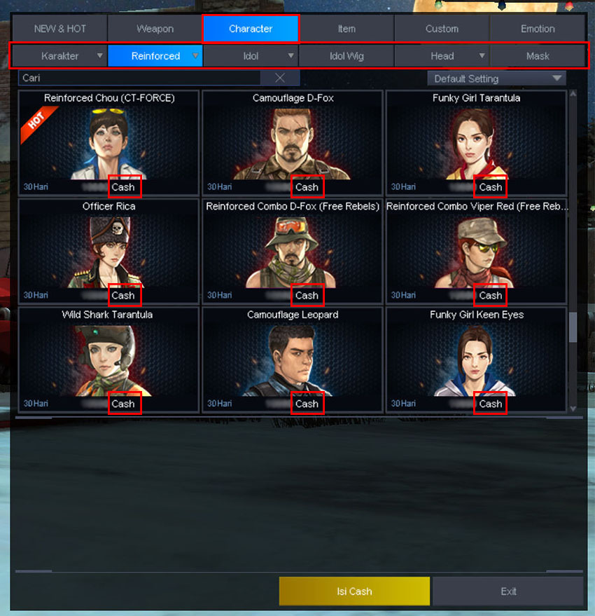 2. How to purchase Item Normal / Reinforce Character, Idol, Mask, Headgear, and Wig using PB CASH in the PREMIUM SHOP