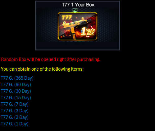 Terms Conditions: 1. Especially for IDs who have NEVER spent / purchased items using PB Cash. 2. To purchase the type of Starter Pack with the duration & discount you want, you must reach a certain Total Login / Attendance. Example : Want to Buy Starter Pack T77 Gold with a Duration of 30 Days & Discount 80% Then you must reach a Total Login / Attendance of 5 Days first so that the Starter Pack T77 Gold discount promo with a Duration of 30 Days & Discount 80% comes out / appears in-game. 3. If you have reached a certain Total Login / Attendance, then the promo items that have been provided above with the previous duration WILL NOT come out / appear again. Example : You have reached a Total Login / Attendance of 3 Days then the promo Starter Pack T77 Gold, Starter Pack Kar98k TSR Gold, and Starter Pack Pindad SS3 Gold with a Duration of 7 Days & Discount 75% will come out / appear in the game and Duration of 3 Days with Discount 70% WILL NOT come out / appear again. 4. 1 Account only HAS 1X CHANCE to purchase among the promo items with the duration provided. Example : Already Purchased One of the Discounted Starter Pack Items on Attendance Day 1 then you WILL NOT be able to purchase Discounted Starter Pack Items on Attendance Day 3 and Day 5. 5. For those of you who have purchased items using PBCash before, the items above will not come out / appear. |