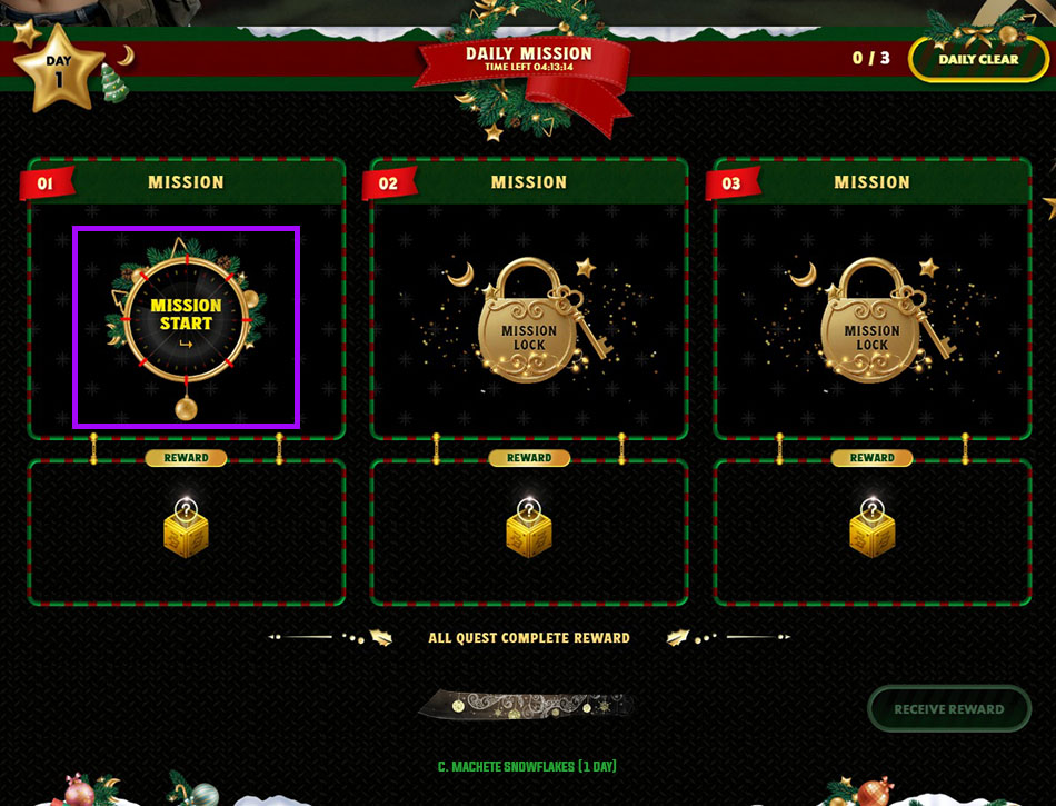 To claim the rewards, you must complete all daily random missions by clicking MISSION START ![]() Complete the quests listed in the game to finish this Web Mission