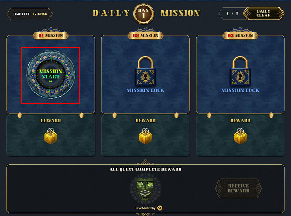 To claim the rewards, you must complete all daily random missions by clicking MISSION START ![]() Complete the quests listed in the game to finish this Web Mission