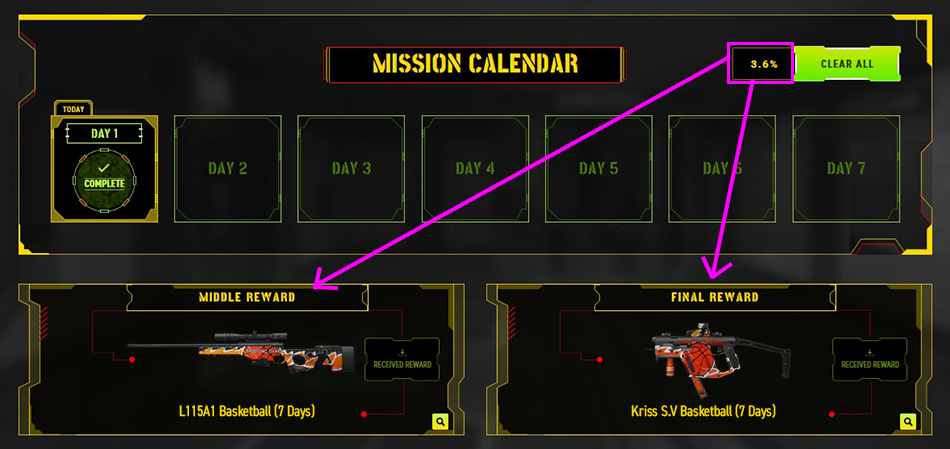 Requirements to Receive Additional Mission Calendar Reward You must complete all Daily Missions every day during the event period and reach a certain total percentage on the Mission Calendar. ![]()