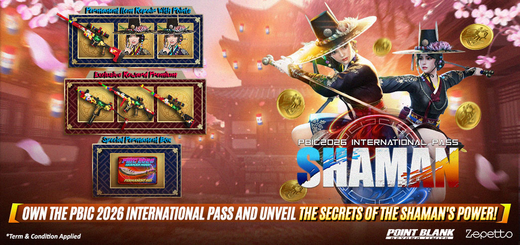 *All Items, Terms & Times are subject to change without notice. ============================================================== ![]() Hi Troopers, Season Exp UP items 10, 20, 30, 40 and 50, will begin to be automatically DELETED from Inventory at the end of each Battle Pass Period. Please use these items BEFORE the PBIC 2026 INTERNATIONAL PASS : SHAMAN period ends. ![]() ![]() ![]() ![]() ![]() . ![]() ============================================ ![]() After this February 24, 2026 Update, You can buy Exclusive Items in the Premium Shop which can only be accessed if you have purchased the Premium Battle Pass 1. Login first through the Official Point Blank Website