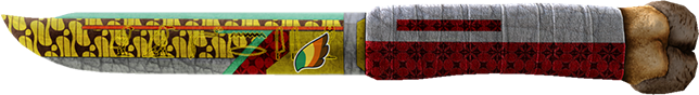 Boneknife Bhinneka melambangkan keberagaman budaya Indonesia, dengan motif Asmat Papua, motif tumpal, sayap cendrawasih, dan motif bunga merah khas Palembang.